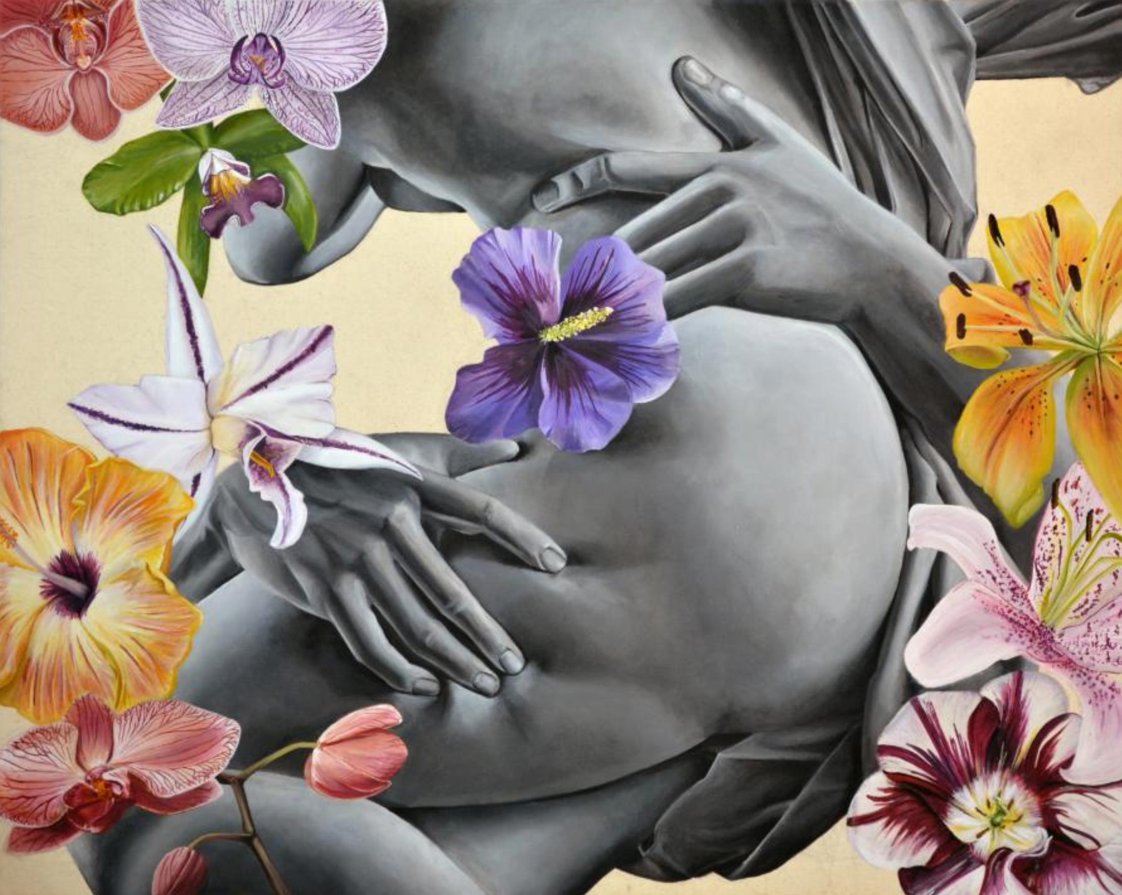 “Pluto and Proserpina”, executed between 1621 and 1622 by Italian artist Gian Lorenzo Bernini, captures the moment when Pluto, god of the underworld, abducts Proserpina, daughter of Zeus, and carries her back to the underworld to be his wife. The artist choses to focus on the breath taking detail of the dimpling of Proserpina’s flesh as Pluto’s fingers dig into her thigh and waist, and to add a typical vanitas symbol – flowers – which through their vibrant colours contrast the harshness of the Baroque marble sculptural group.