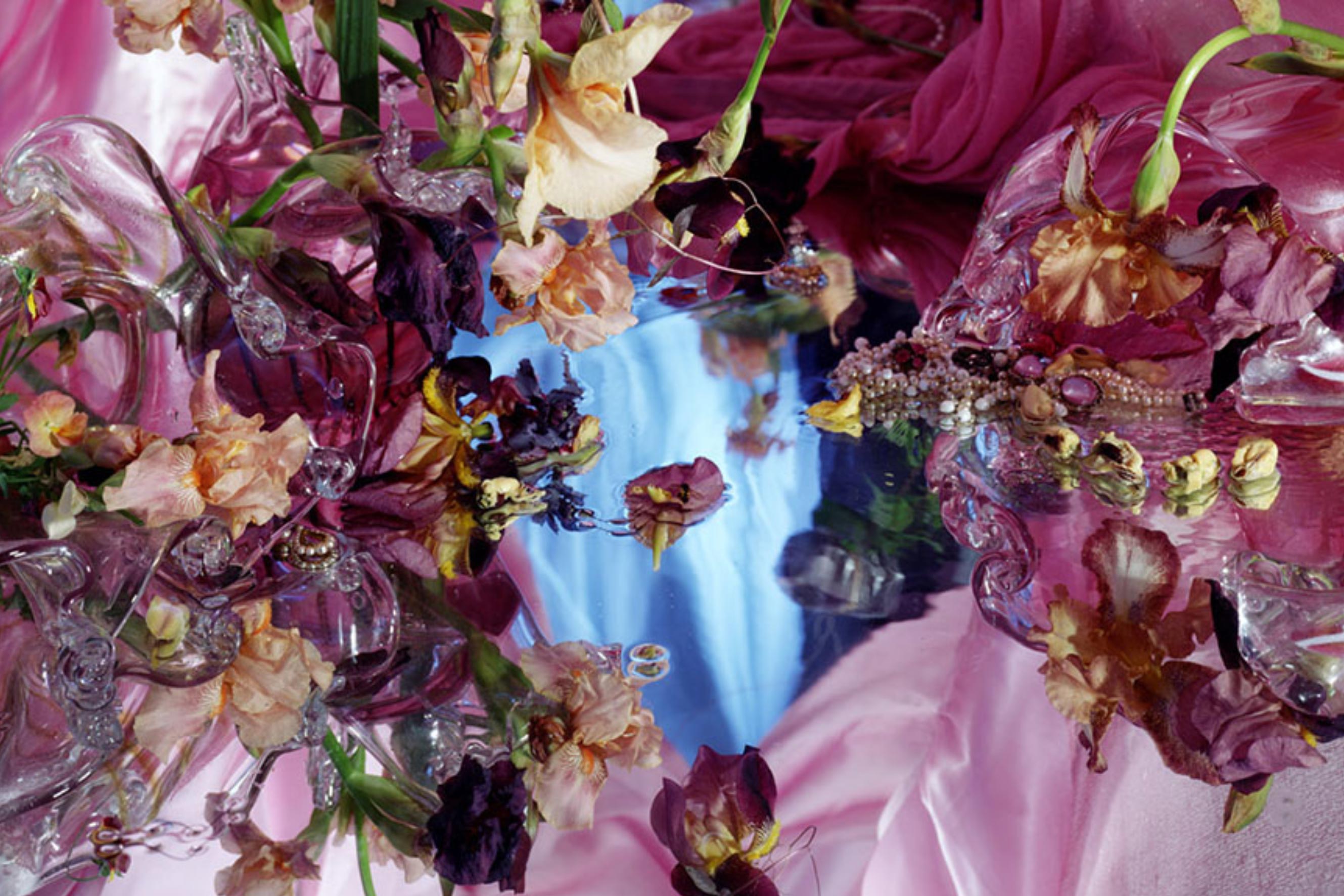 The works of Margriet Smulders look like abstract compositions swarmed with colours and undefined forms, shapes. On a second look, we realize these are floating flowers, appearing to be on the edge of disintegration, posed on mirrors, for example. She is considered one of the most successful still life photographers.