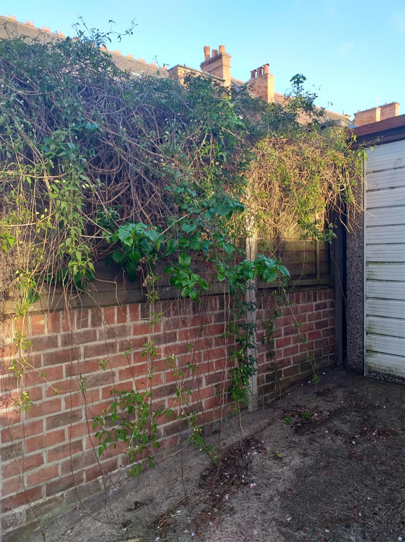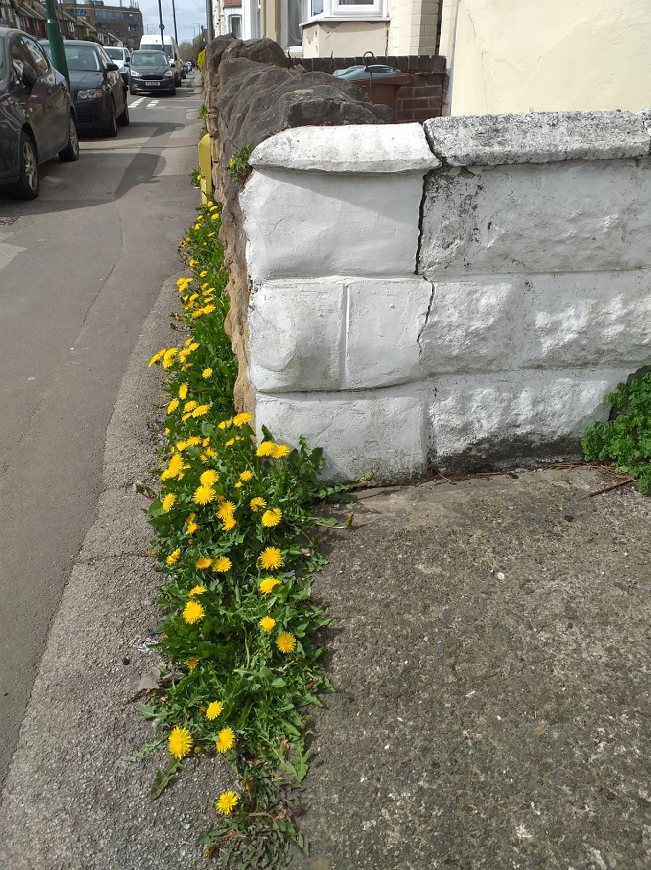 In this small painting which is inspired by the alley ways on my walks, particularly the dandelions which flourish there.